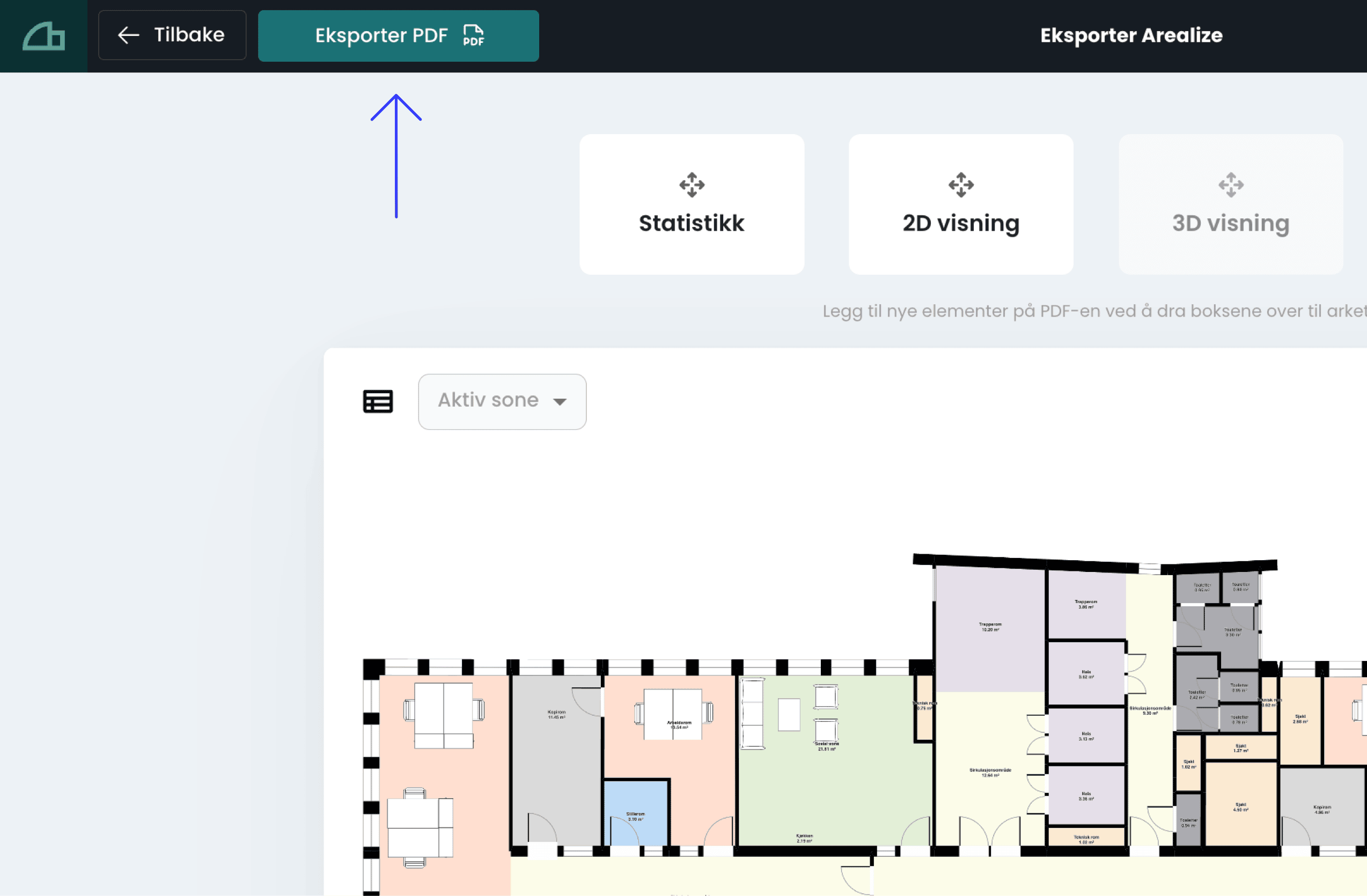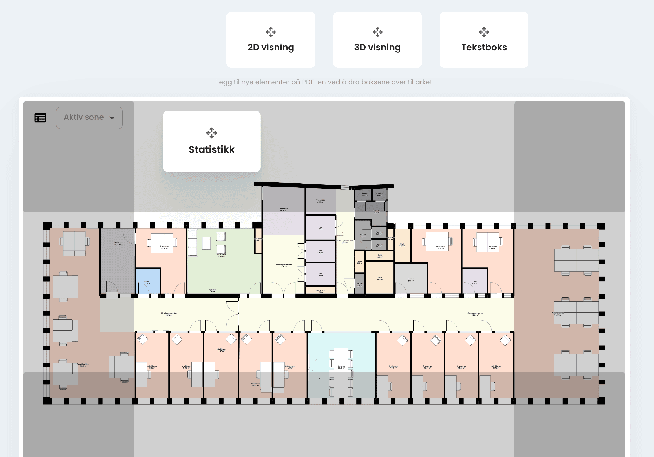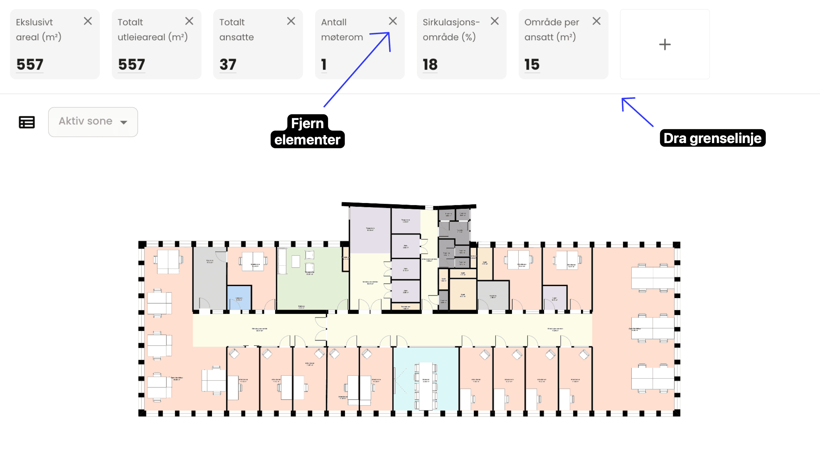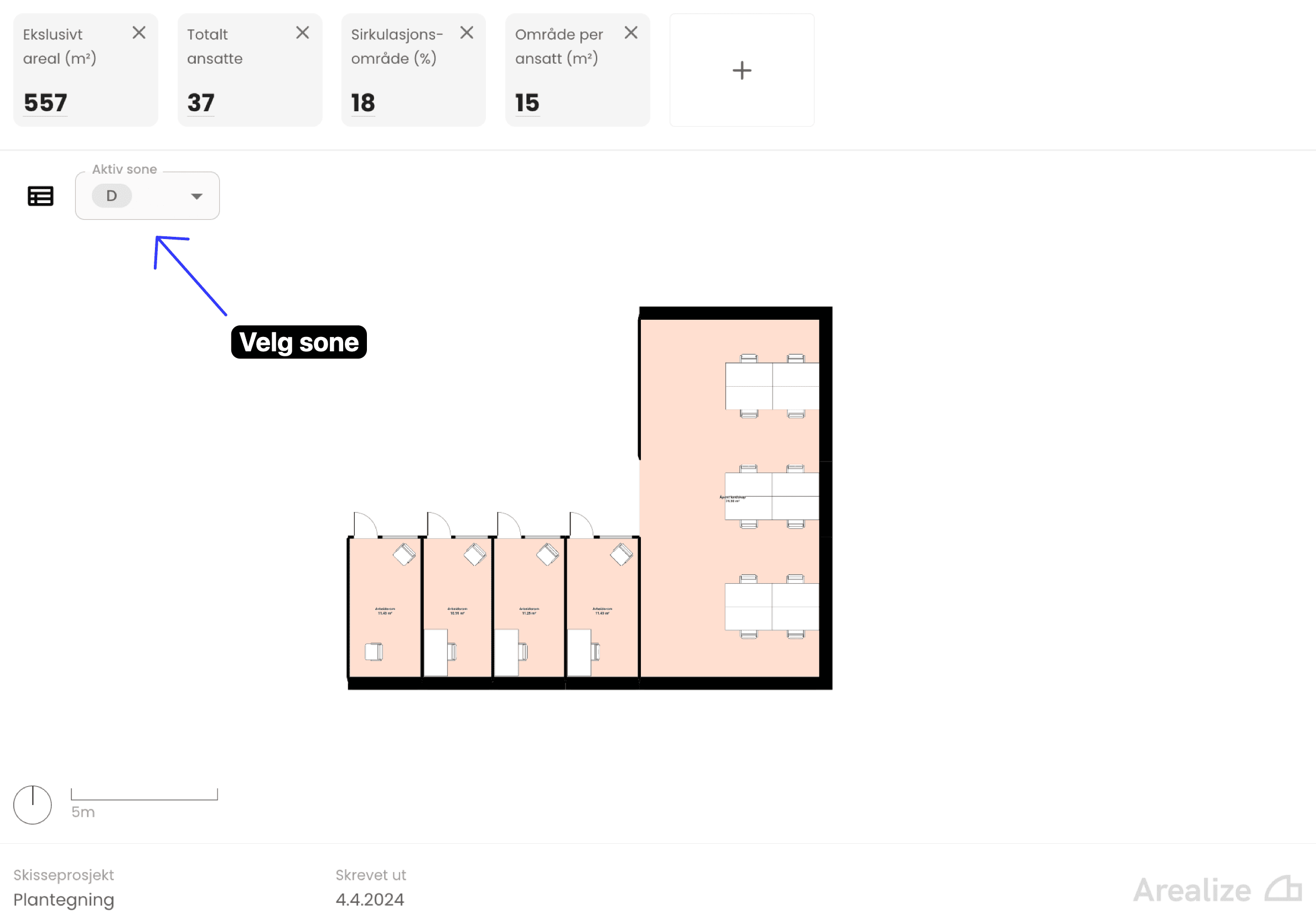 Du kan isolere en sone ved å åpne nedtrekksmenyen og velge én eller flere soner. Dette skjuler alt annet areal.