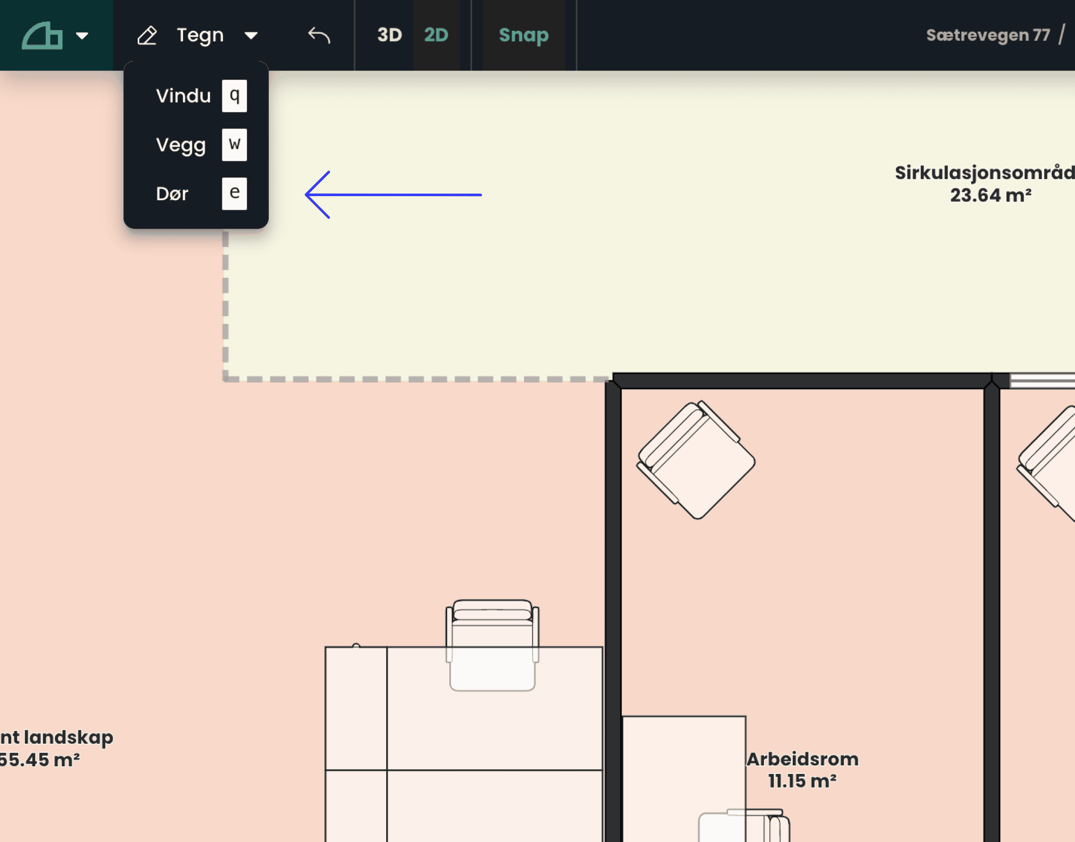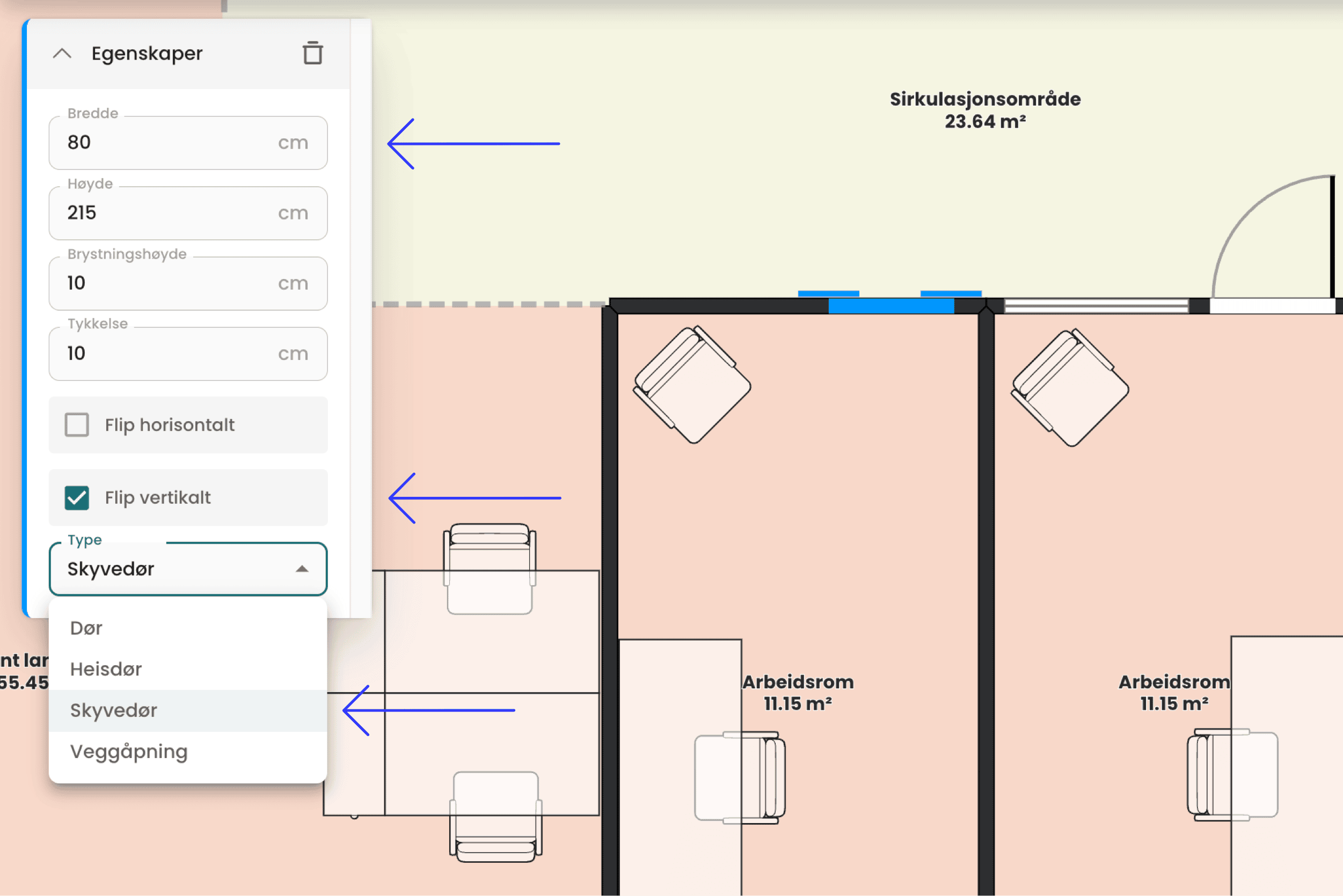 Bruk musen for å flytte døren til riktig posisjon, og klikk for å bekrefte plassering.