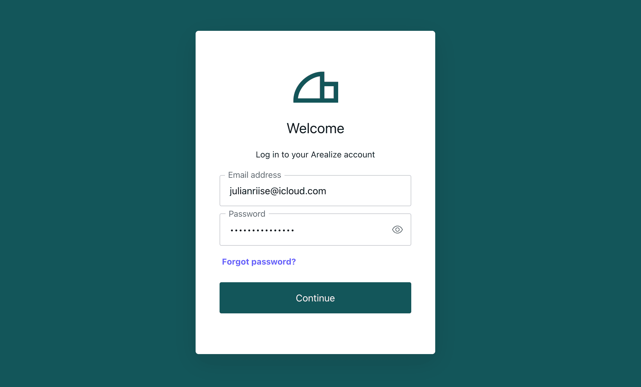 Send en e-post til benedicte@arealize.ai og be om å få opprettet en ny bruker.